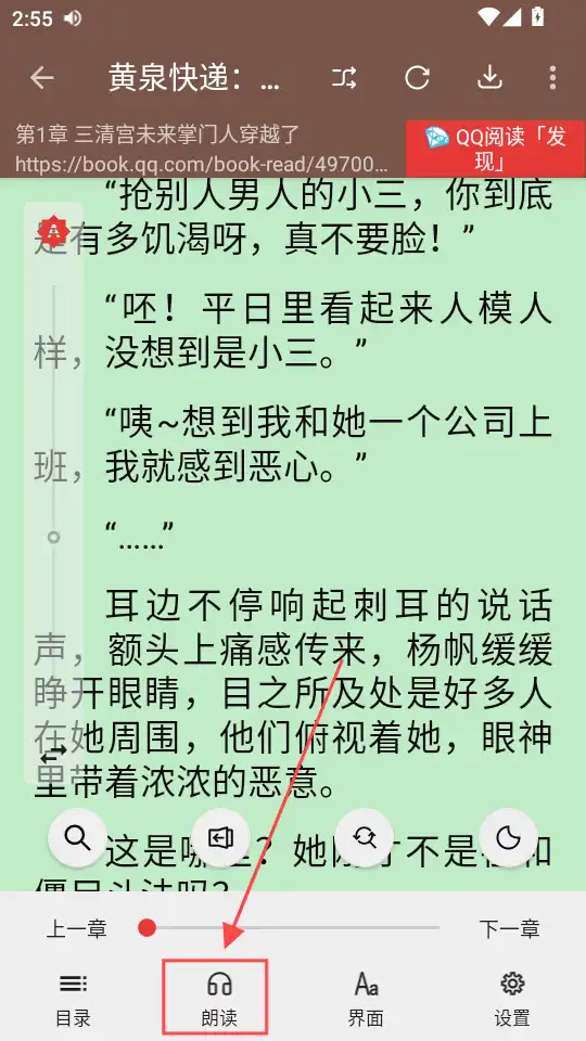 1、小说阅读界面点开设置界面,点朗读